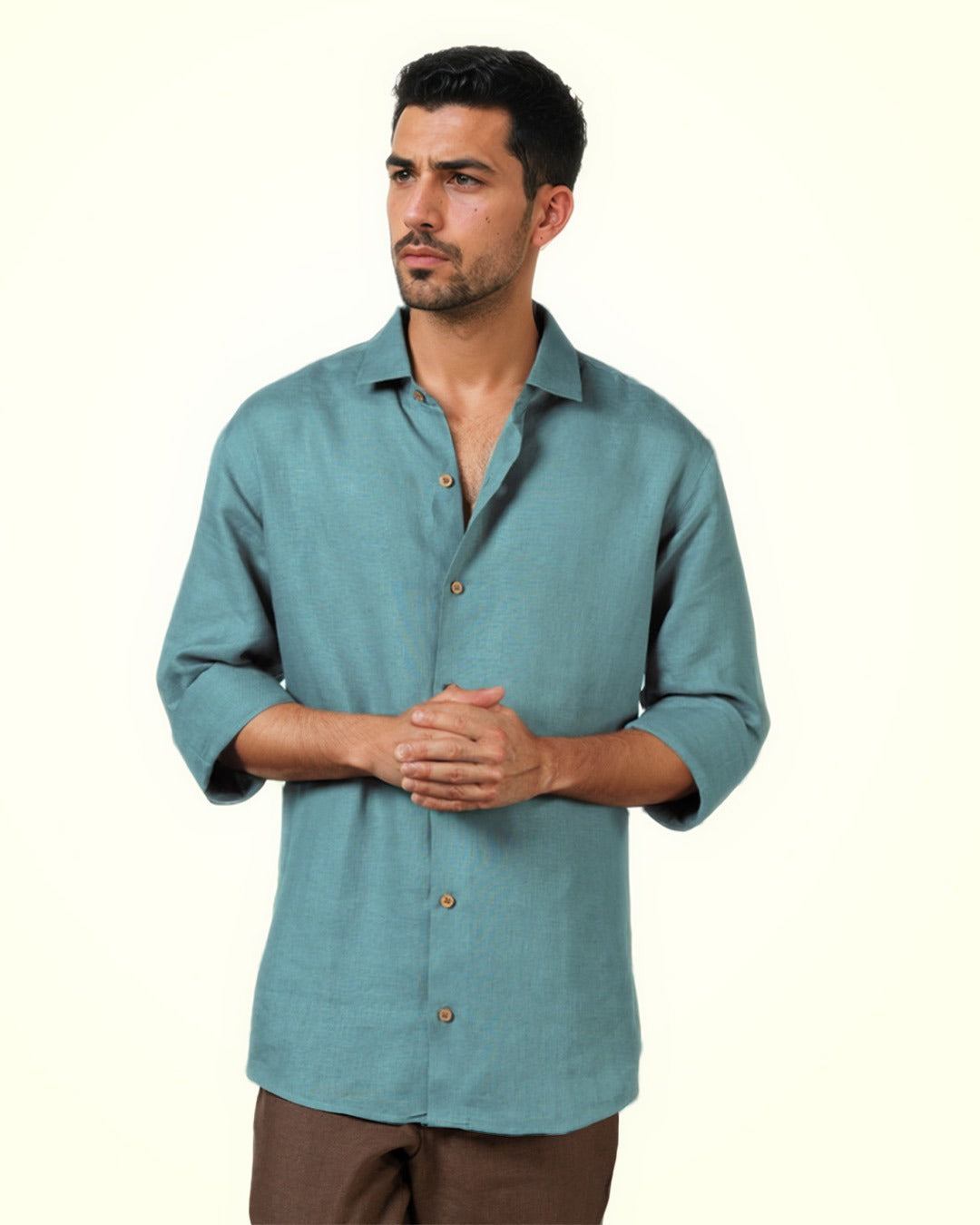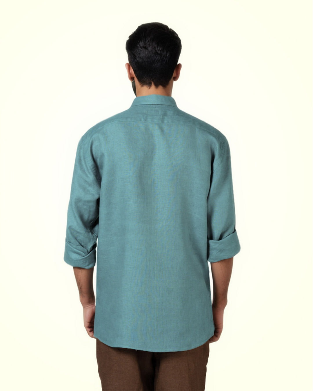 DARK SKY-BLUE PURE LINEN FULL SLEEVE SHIRT